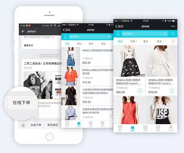 陌拜客户,业务员用微信展示商品;促销抽奖,让新客户下第一笔订单;快速处理订单,提高老客户满意度;招商加盟、一键分享、开放注册,快速拓展企业销售渠道。